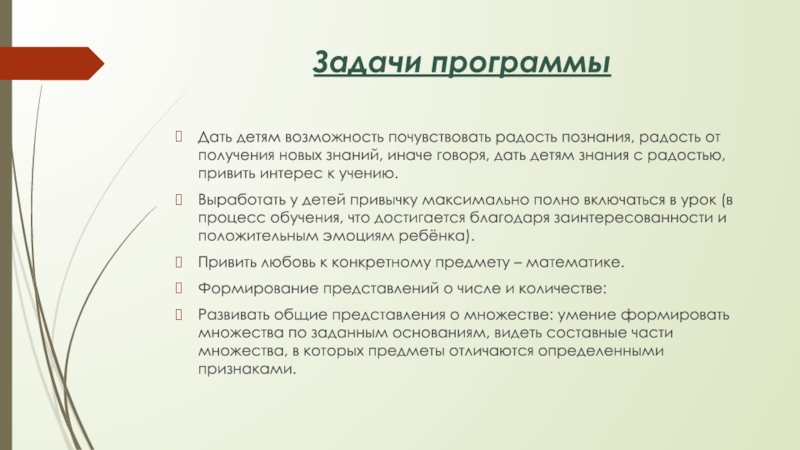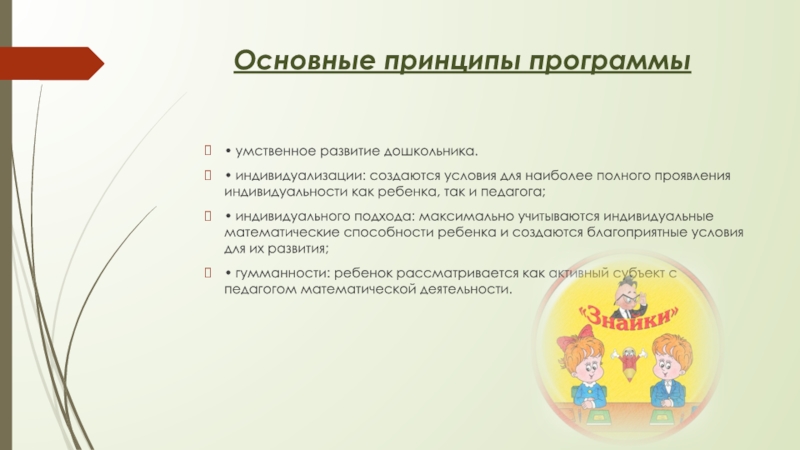 • гумманности: ребенок рассматривается как активный субъект с педагогом математической деятельности.