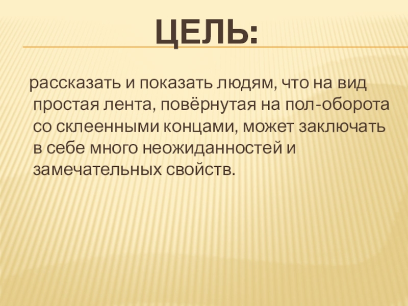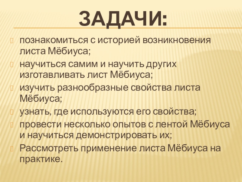 провести несколько опытов с лентой Мёбиуса и научиться демонстрировать их;