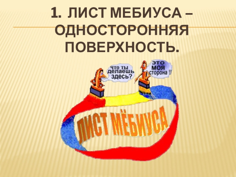 Слайд 141. Лист Мебиуса – односторонняя поверхность.
