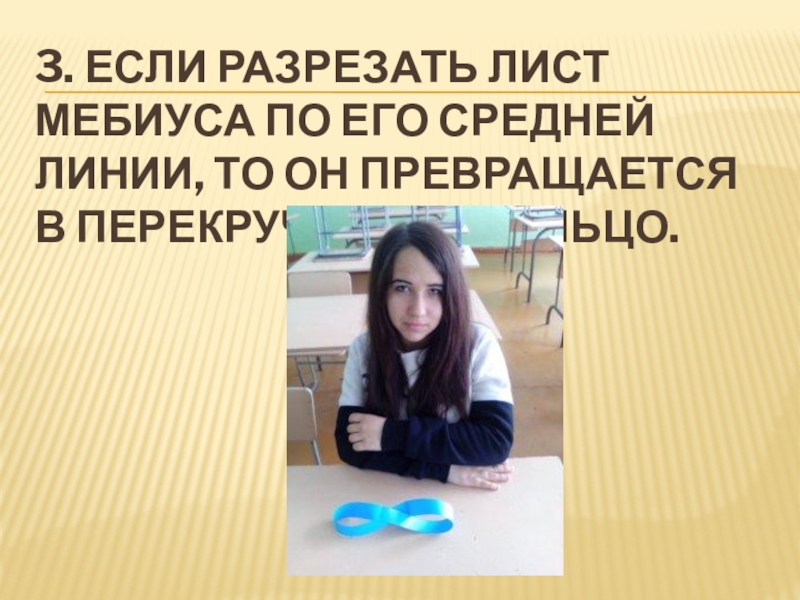 Слайд 163. Если разрезать лист Мебиуса по его средней линии, то он