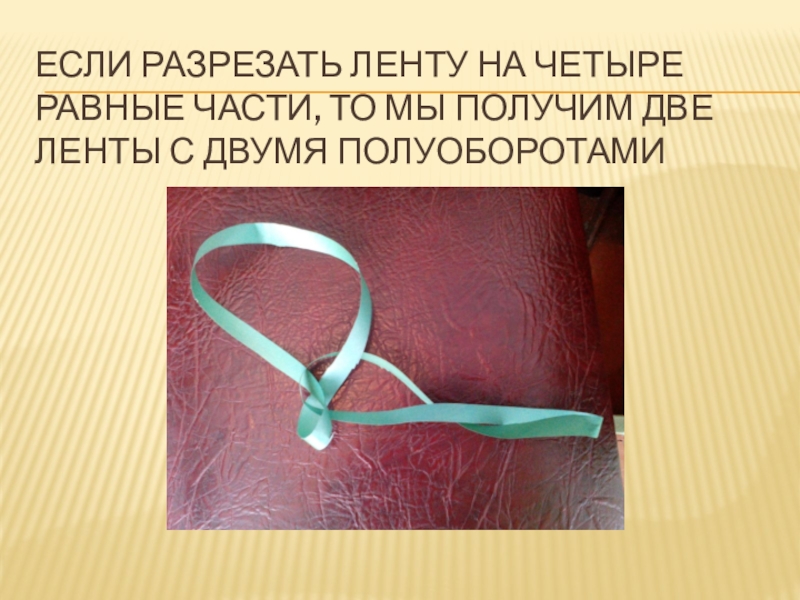 Слайд 20Если разрезать ленту на четыре равные части, то мы получим две