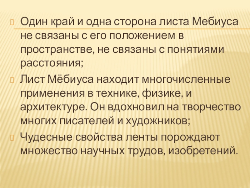 Слайд 36Один край и одна сторона листа Мебиуса не связаны с его