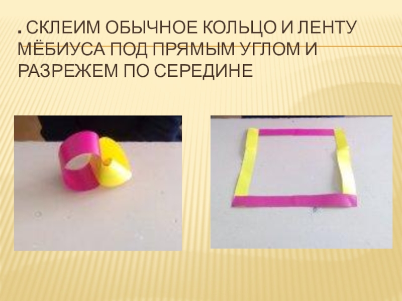 Слайд 22. Склеим обычное кольцо и ленту Мёбиуса под прямым углом и
