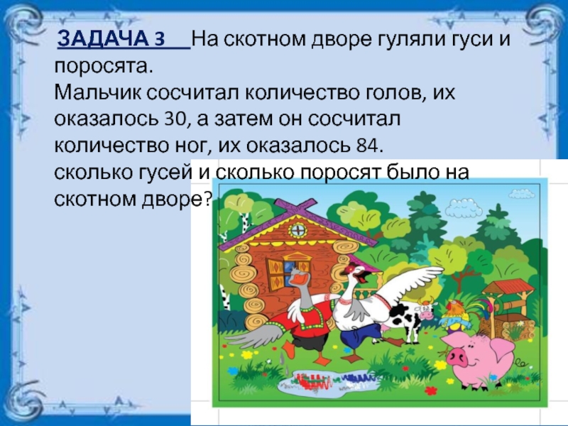ЗАДАЧА 3 На скотном дворе гуляли гуси