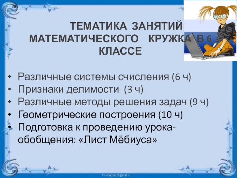 ТЕМАТИКА ЗАНЯТИЙ МАТЕМАТИЧЕСКОГО КРУЖКА В 6 КЛАССЕ