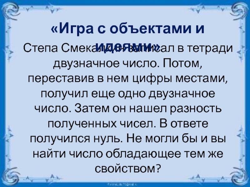 Слайд 13Степа Смекалкин записал в тетради двузначное число. Потом, переставив в нем