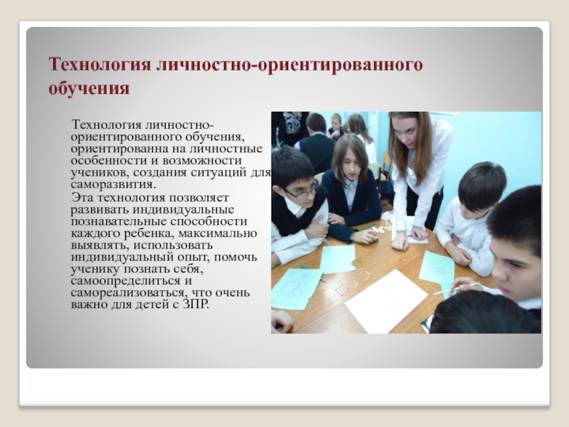 Эта технология позволяет развивать индивидуальные познавательные способности каждого ребенка, максимально выявлять, использовать индивидуальный опыт, помочь ученику познать себя, самоопределиться и самореализоваться, что очень важно для детей с ЗПР.