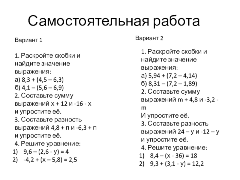 2. Составьте сумму выражений m + 4,8 и -3,2 - m