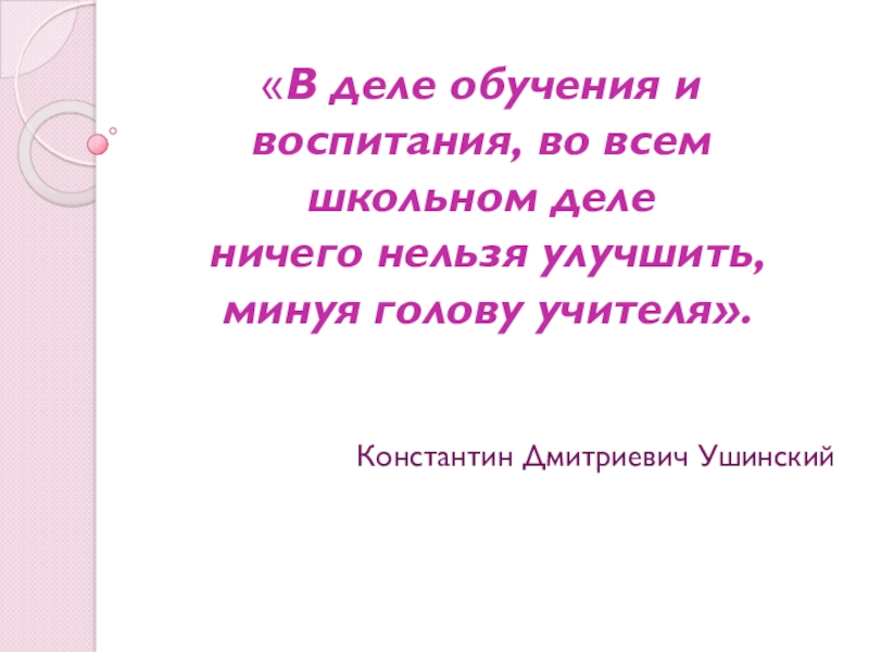 Слайд 29«В деле обучения и воспитания, во всем школьном деле