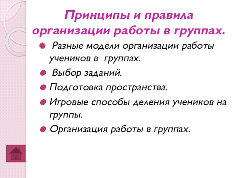 • объяснять, помогать, хвалить и т.д. до тех пор, пока ребята не почувствуют потребность в постоянной работе в группах.