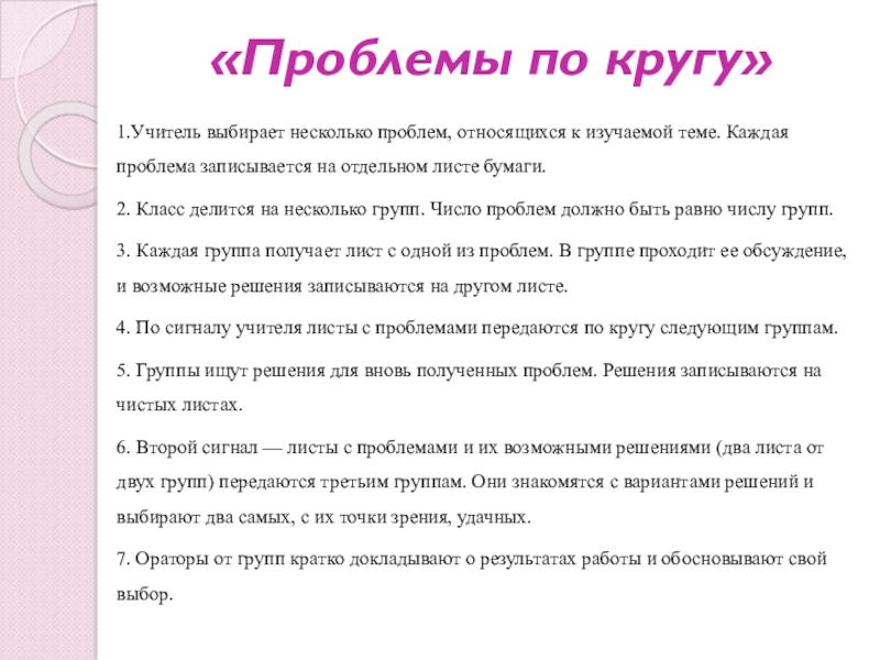 4. По сигналу учителя листы с проблемами передаются по кругу следующим группам.
