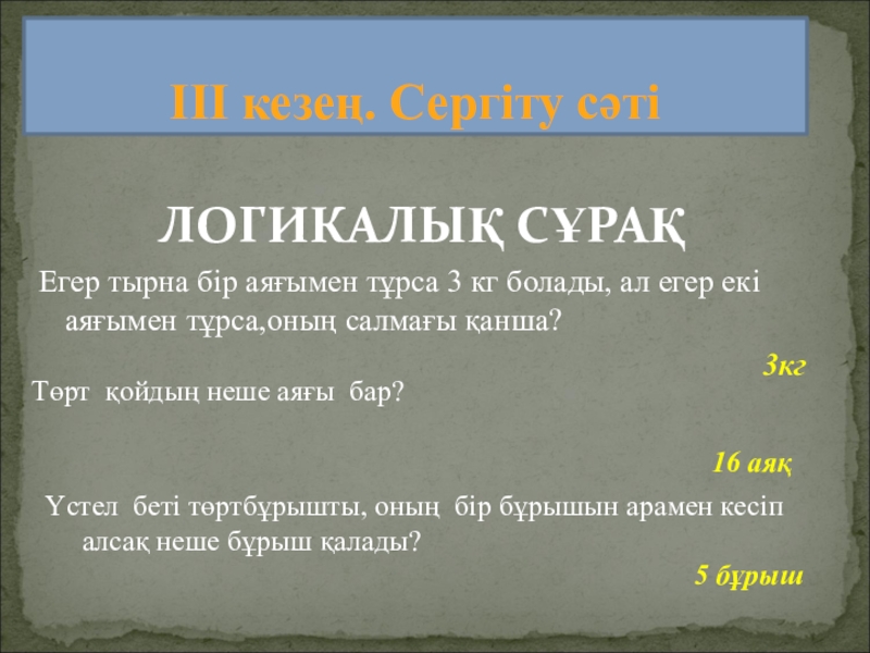 Үстел беті төртбұрышты, оның бір бұрышын арамен кесіп алсақ неше бұрыш қалады?