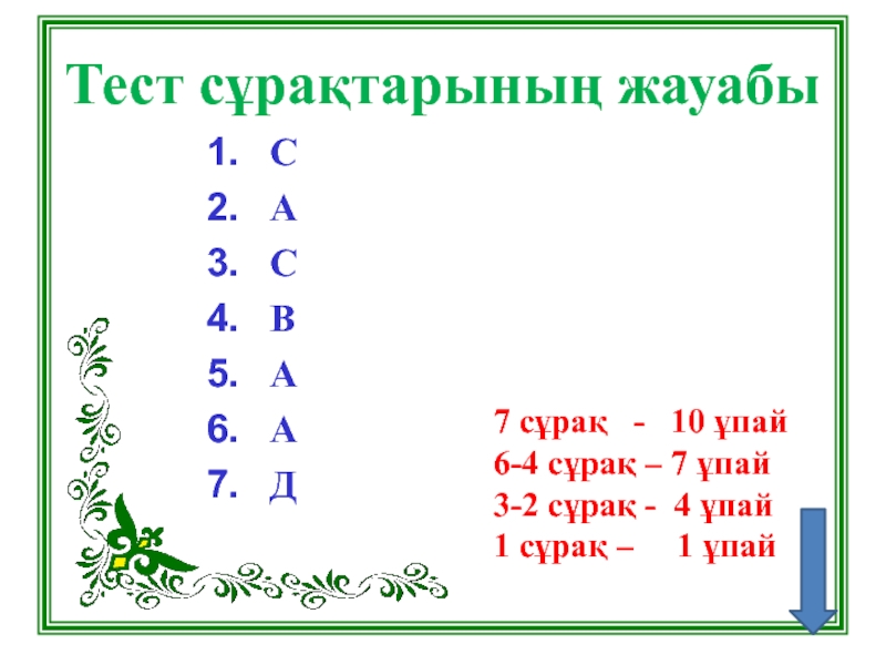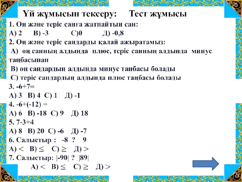 Слайд 5Үй жұмысын тексеру: Тест жұмысы