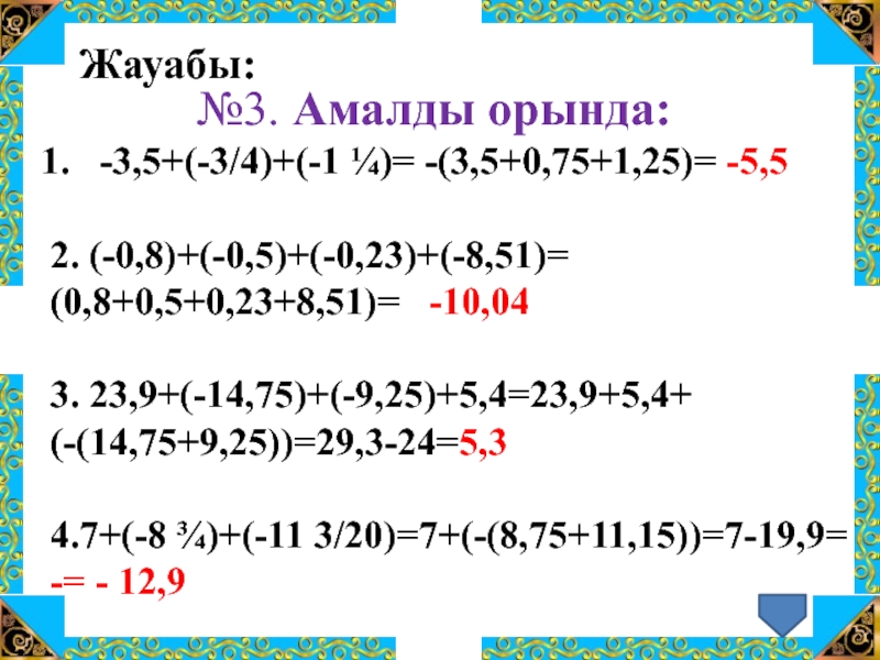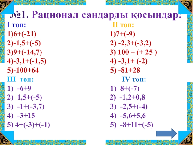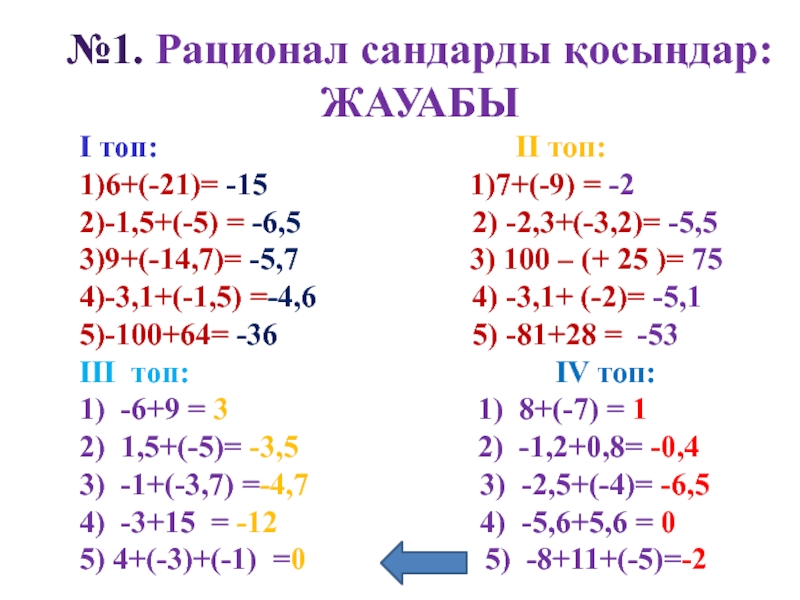 Слайд 17№1. Рационал сандарды қосыңдар:
