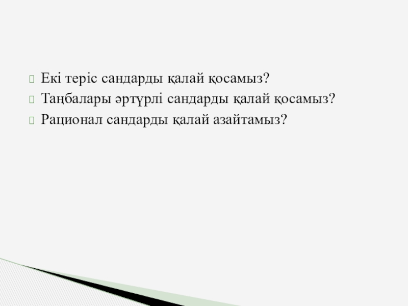 Слайд 2Екі теріс сандарды қалай қосамыз?