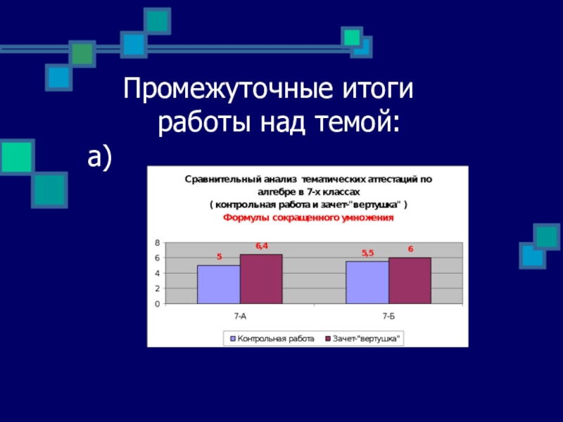 Слайд 23 Промежуточные итоги работы над темой: а)