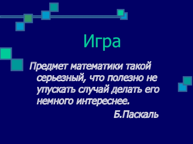 ИграПредмет математики такой серьезный, что полезно не упускать случай делать его немного интереснее.