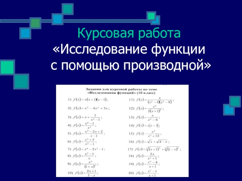 Слайд 16Курсовая работа «Исследование функции с помощью производной»