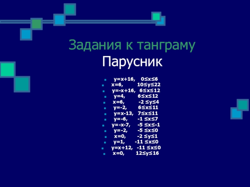 Задания к танграму Паруснику=х+16,  0≤х≤6