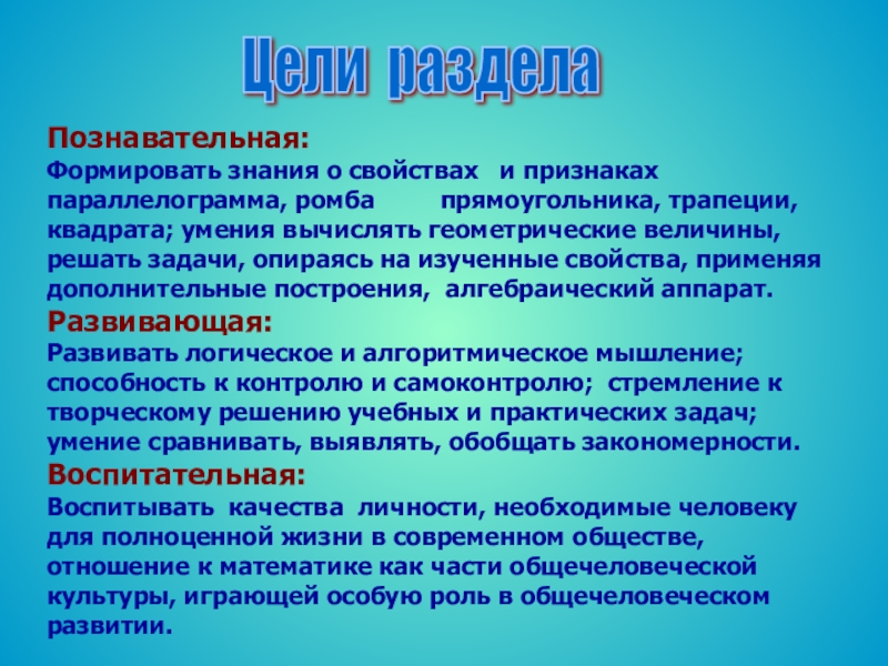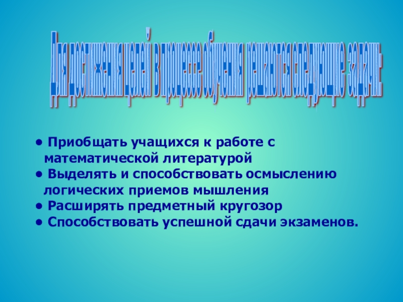 Для достижения целей в процессе обучения решаются следующие задачи: