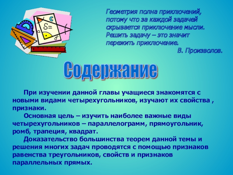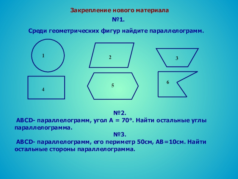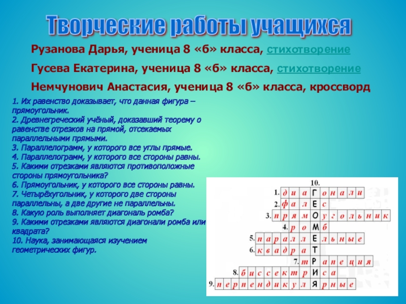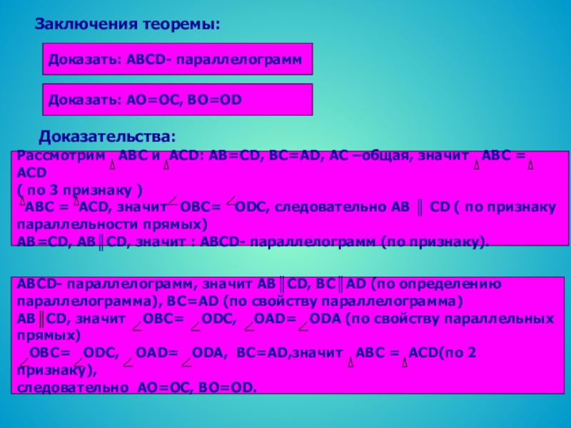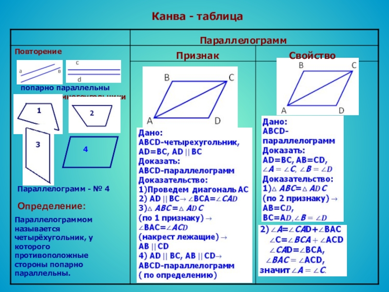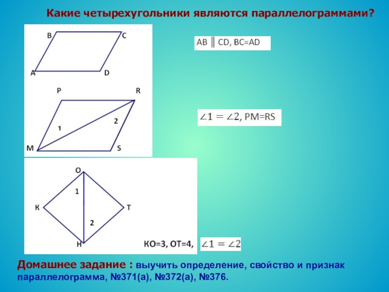 1. Их равенство доказывает, что данная фигура – прямоугольник.