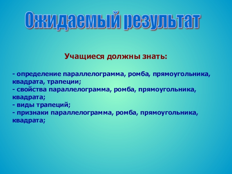 7. Четырёхугольник, у которого две стороны параллельны, а две другие не параллельны.