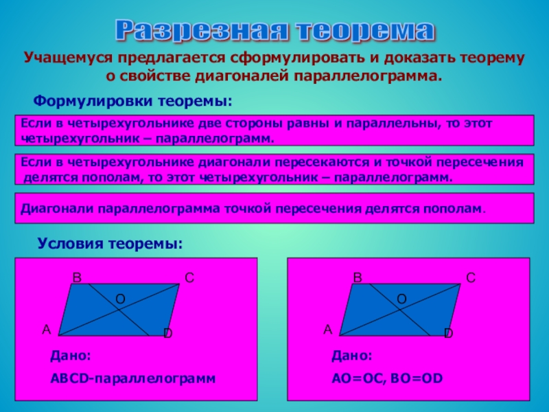 делятся пополам, то этот четырехугольник – параллелограмм.