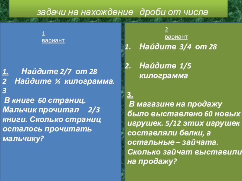 В магазине на продажу было выставлено 60 новых игрушек. 5/12 этих игрушек составляли белки, а остальные – зайчата. Сколько зайчат выставили на продажу?