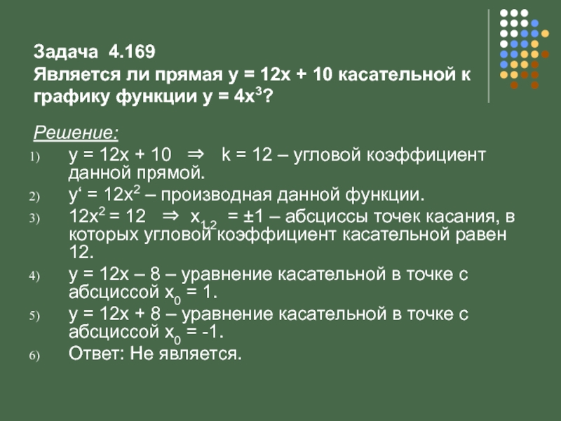 12х2 = 12 ⇒ х1,2 = ±1 – абсциссы точек касания, в которых угловой коэффициент касательной равен 12.