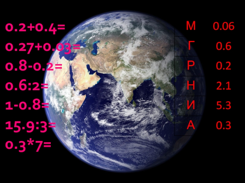 0.2+0.4=0.27+0.03=0.8-0.2=0.6:2=1-0.8=15.9:3=0.3*7=