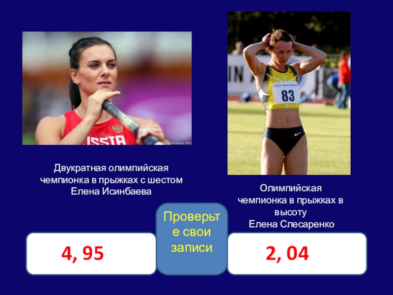 Олимпийские рекорды чемпионок в метрах. Напишите эти числа: