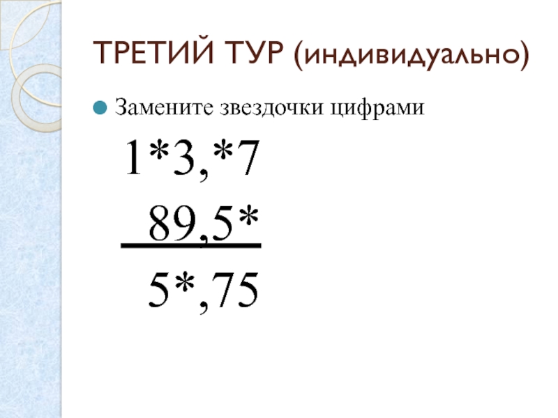 Слайд 26ТРЕТИЙ ТУР (индивидуально)