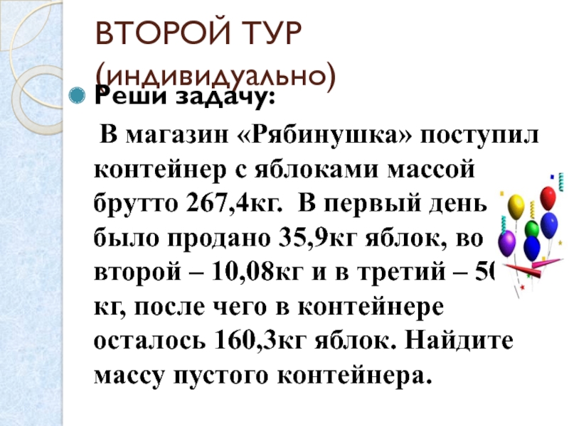 Слайд 15ВТОРОЙ ТУР (индивидуально)