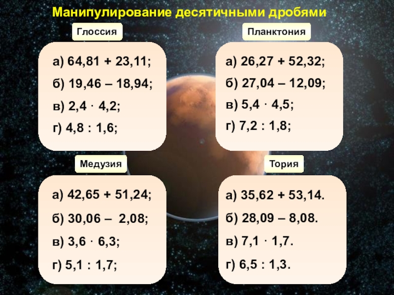 На планете всего четыре страны: Глоссия, Медузия, Планктония и Тория.