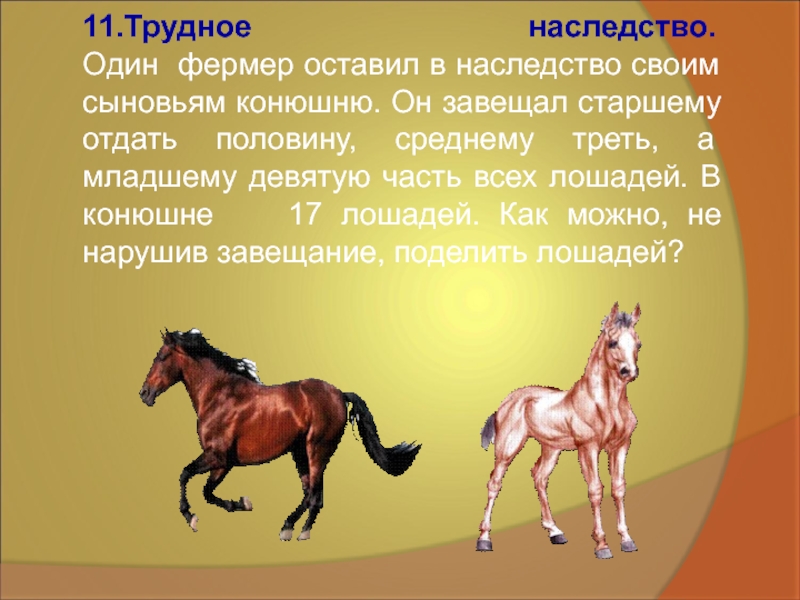 Один фермер оставил в наследство своим сыновьям конюшню. Он завещал