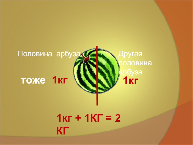 Слайд 1710. Арбуз. Масса арбуза равна 1 кг и половине арбуза .
