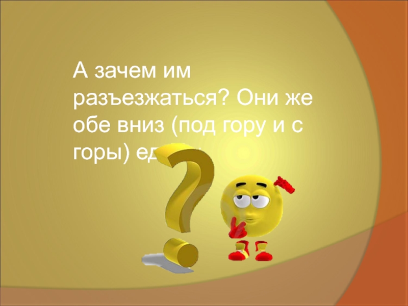 Слайд 16А зачем им разъезжаться? Они же обе вниз (под гору и