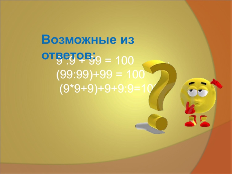 Слайд 10Как получить 100 из четырёх девяток ? Из