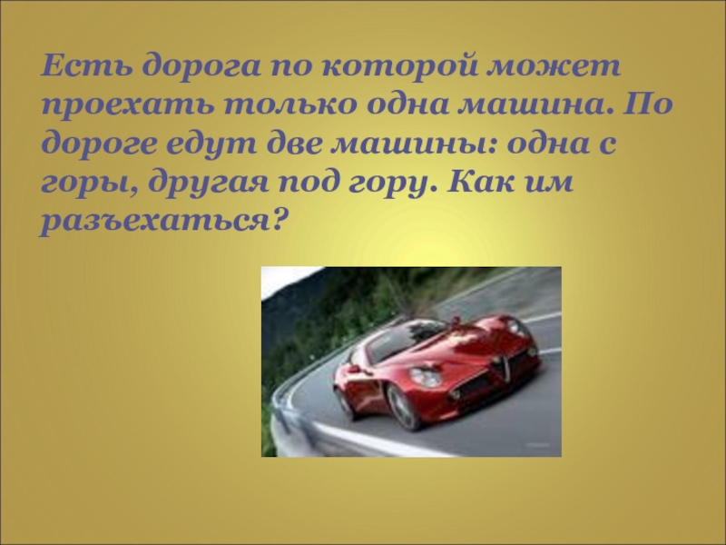 Слайд 15Есть дорога по которой может проехать только одна машина. По дороге