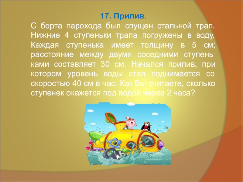 Слайд 29Через два часа под водой будут те же 4 ступеньки, потому