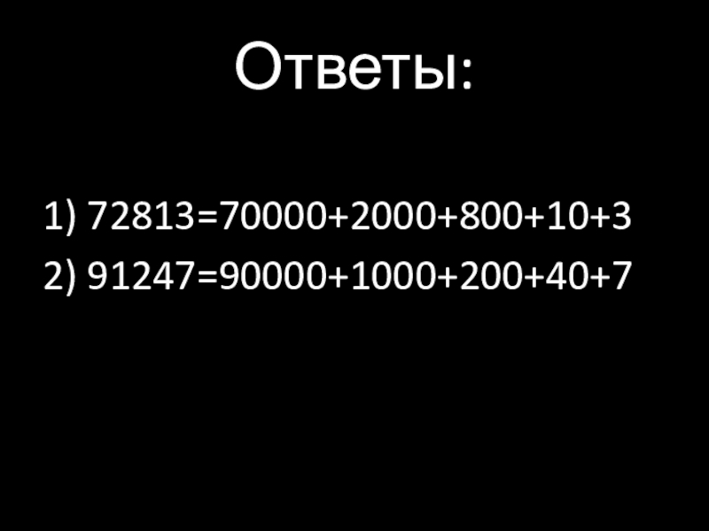 Ответы:1) 72813=70000+2000+800+10+32) 91247=90000+1000+200+40+7