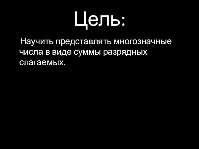 Цель:  Научить представлять многозначные числа в виде суммы разрядных слагаемых.