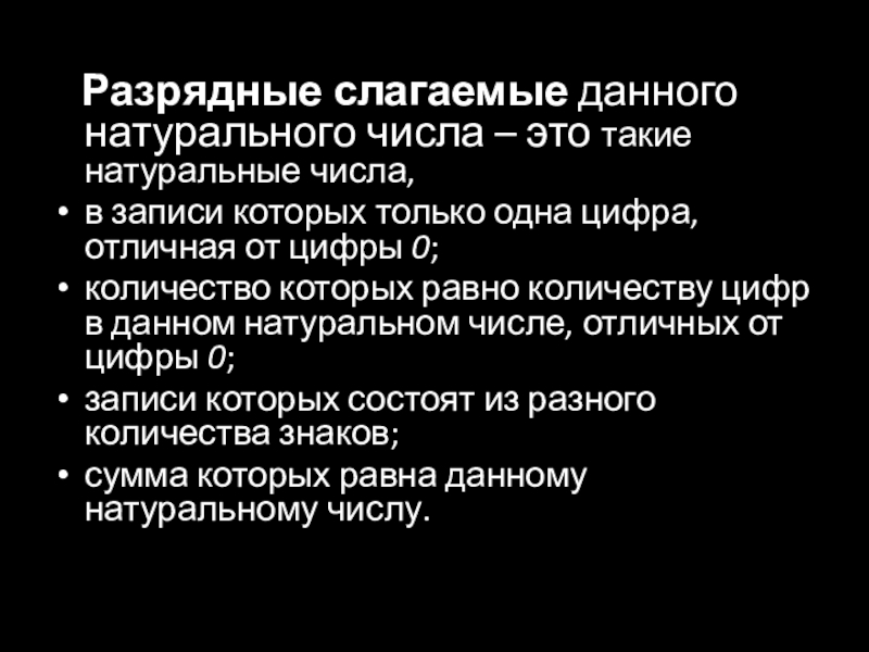 Слайд 5 Разрядные слагаемые данного натурального числа – это такие натуральные числа,