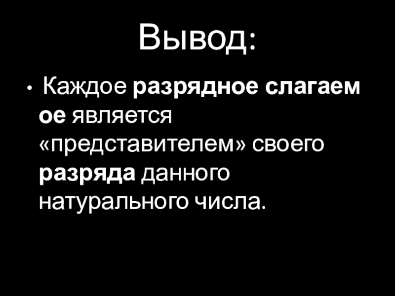 Вывод: Каждое разрядное слагаемое является «представителем» своего разряда данного натурального числа.