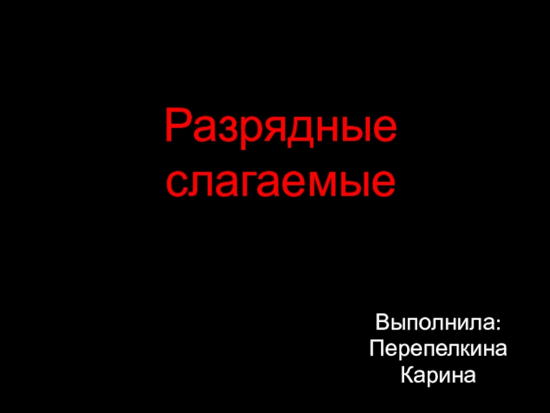 Разрядные слагаемыеВыполнила:ПерепелкинаКарина