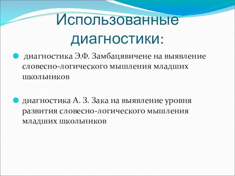 А. З. Зака на выявление уровня развития словесно-логического мышления младших школьников