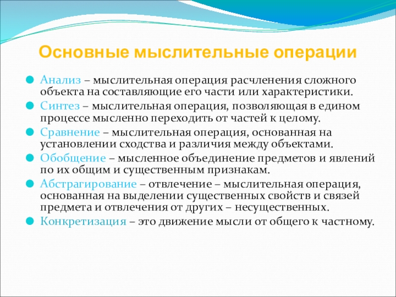 Анализ – мыслительная операция расчленения сложного объекта на составляющие
