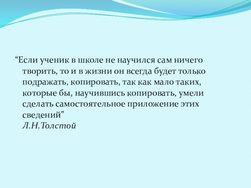 Слайд 2“Если ученик в школе не научился сам ничего творить, то и