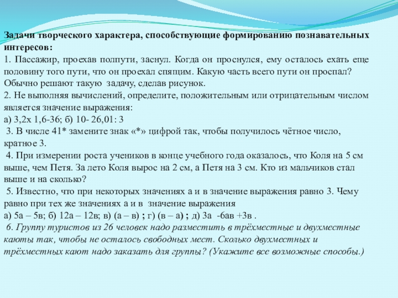 Задачи творческого характера, способствующие формированию познавательных интересов: