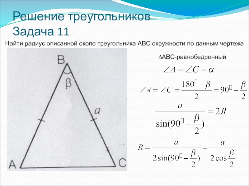 AB=AC=R →∆ABC-равнобедренный